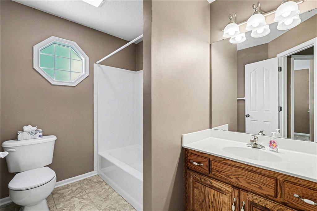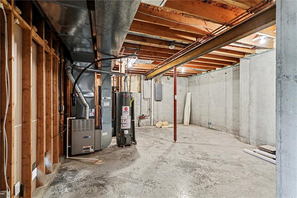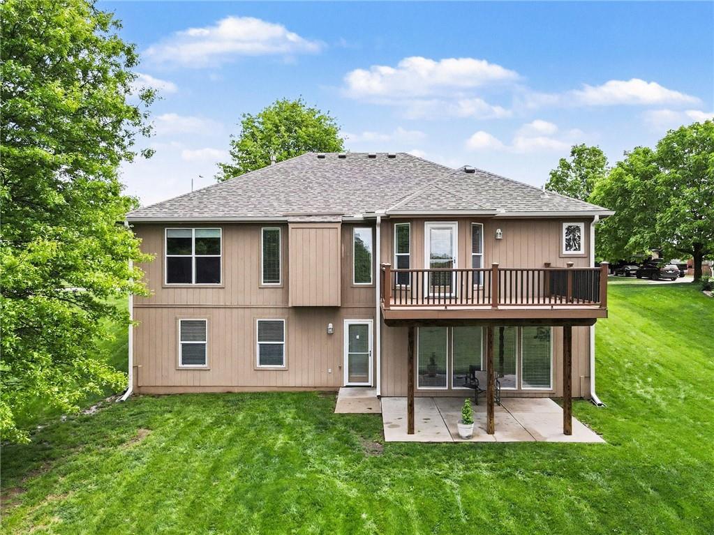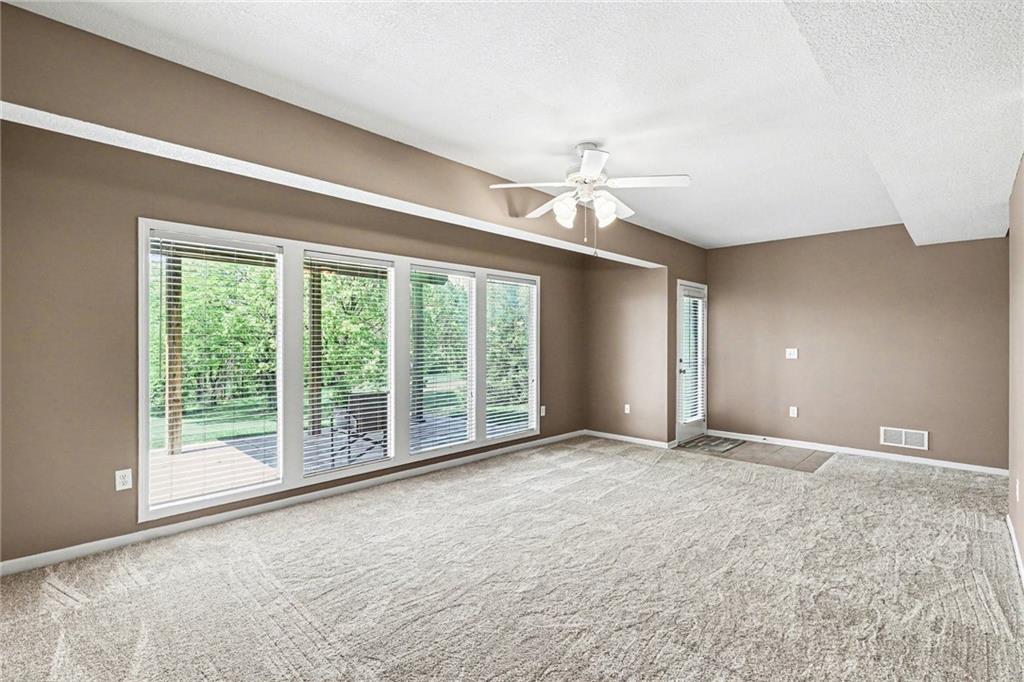 Step into this home and you’re welcomed by a spacious living room with vaulted ceilings and large windows that fill the space with natural light. A built-in feature offers hidden storage for a TV, keeping the room both functional and sleek. The living area flows into a large kitchen featuring classic wood cabinetry, stainless steel appliances, and additional windows for an open, airy feel. Just off the kitchen, you’ll find the dining area with direct access to the expansive deck—perfect for entertaining or relaxing outdoors. Nearby, the laundry room offers convenient access to the garage. Down the hall from the living room is the primary bedroom, complete with a walk-in closet and a private full bathroom. A guest bedroom and an additional full bathroom are also located on this level. The finished basement features a generous family room with large windows and walk-out access to the backyard. This level also includes two additional bedrooms, a full bathroom, and a spacious storage room. Outside, the large backyard is lined with mature trees and backs to an open lot, offering peaceful views and added privacy.