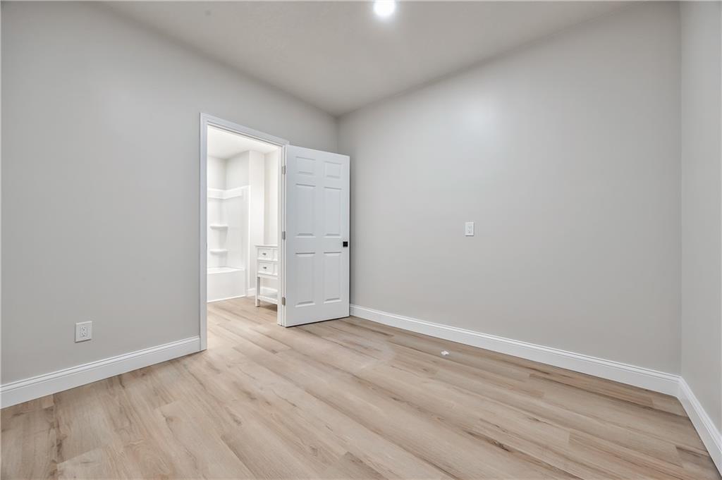 Expansive lower-level space featuring wood-finish flooring, recessed lighting, and a neutral color palette