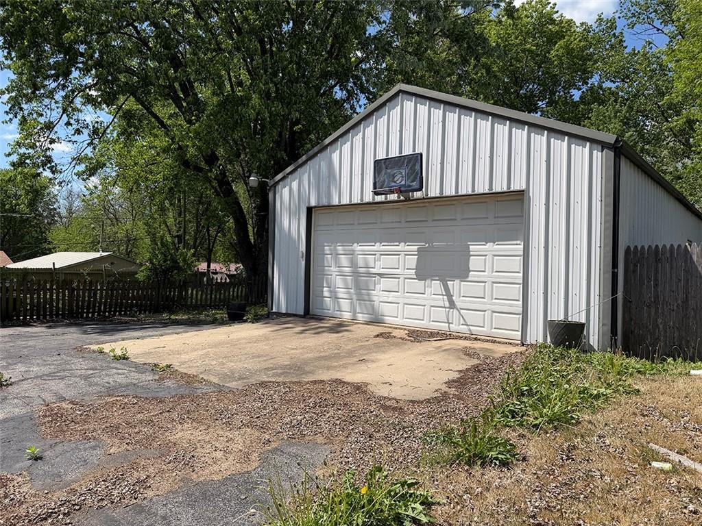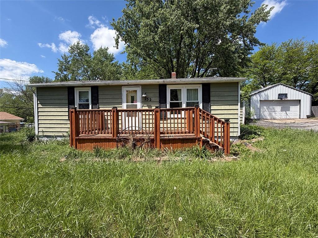 Cleaner-upper!!! Bring a little sweat equity and make this your storybook ranch on half an acre. Rare Find with that HUGE outbuilding/garage and apartment/office. The home hosts two bedrooms and a bath with hardwood floors, ample cabinet space in the open kitchen featuring a look through bar/window to living area and a gas stove and some updated systems. But wait, there is more, another bedroom and bath adjoin the garage, perfect for a private visitor stay, a teenage paradise or 2nd living space or income short term or long term rental. The half acre lot has been gardened with love and the home has been lovingly maintained over the years. There is an oversize two car garage and a huge shed (roughly the size of another two car garage) behind the garage. Bring the dog, the yard is fenced. Just blocks from the city park and lake and only a few minute drive to the quaint downtown Windsor, a must stop along the Katy Trail.