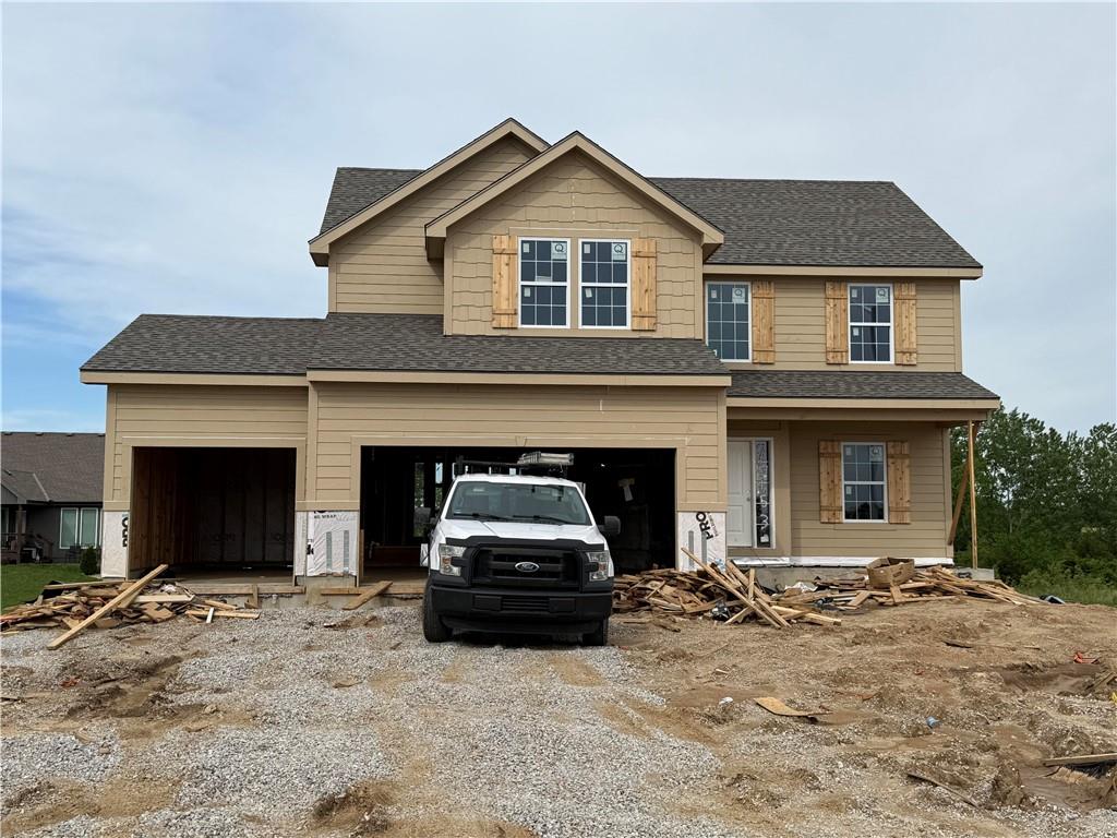 The Newest Phase of Pine Grove Meadows welcomes The "AMBER" by Robertson Construction! A lovely 2-Story with 4 bedrooms, 2 1/2 baths, 3 car garage featuring an open layout and plenty of space for relaxation and entertaining. The Main Level offers REAL HARDWOOD FLOORS, Gas Fireplace, a Wall of Windows that fills the space with lots of natural light, Dining Room, Breakfast area, Stainless Appliances, Solid Surface Countertops, Custom Built Cabinets with soft close doors, Island, and much attention to detail! Upstairs you will find the Master Suite, Walk-in Closet and Master Bath with a separate tub and shower along with 3 more Bedrooms, Full Bath and a LAUNDRY ROOM. COVERED DECK. WALKOUT BASEMENT. Located in the highly-rated NKC/Staley High School District. Super subdivision amenities include a pool, clubhouse, tennis/basketball court and play area. Ideal location with easy access to Downtown KCMO and MCI. Photos and matterport video are of a previously built home, finishes may vary.